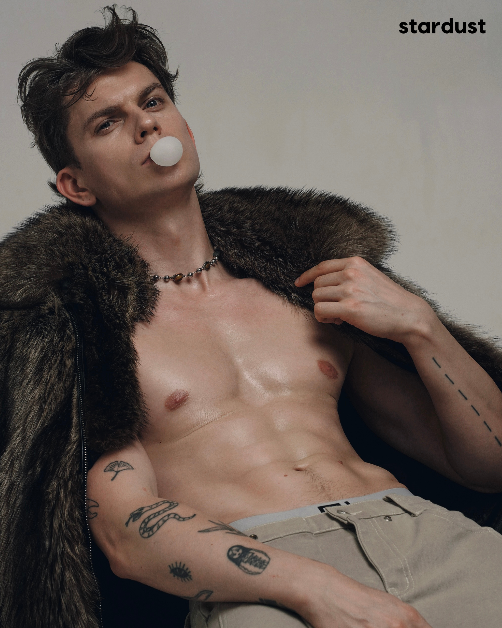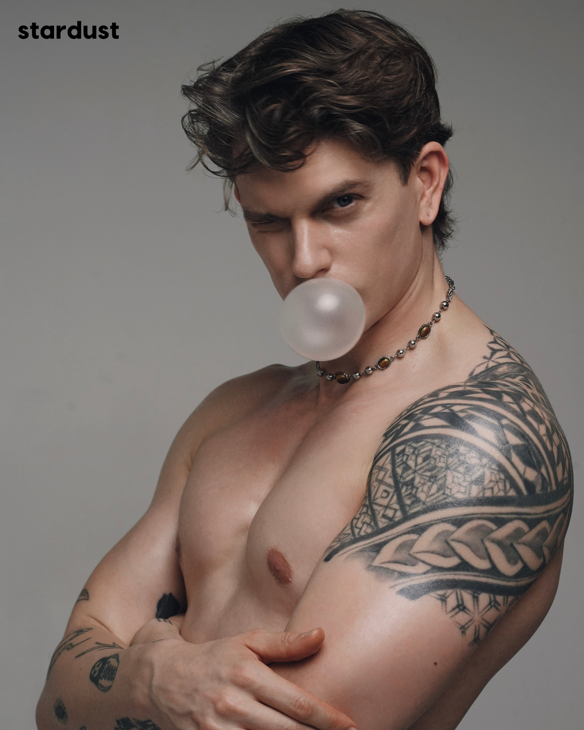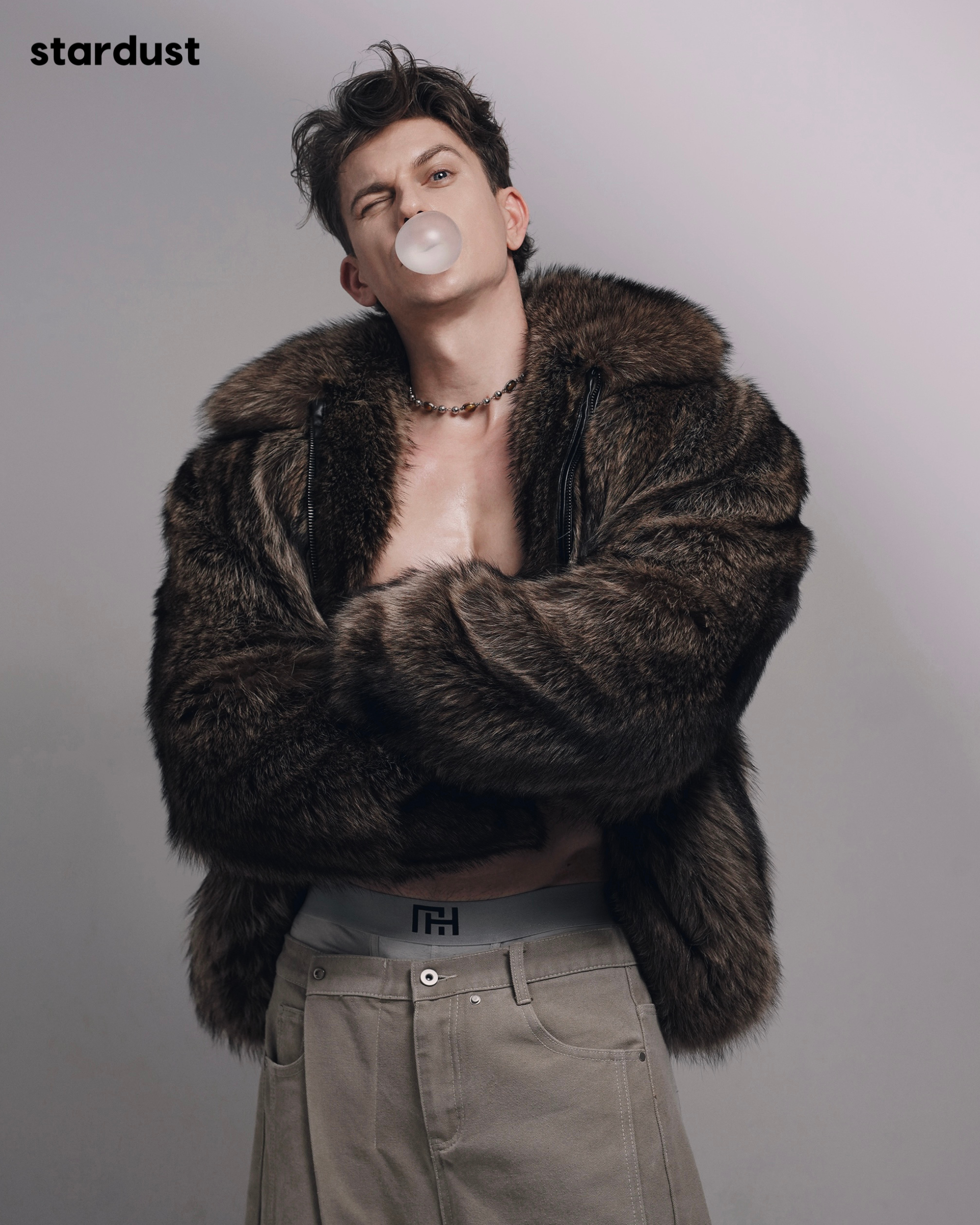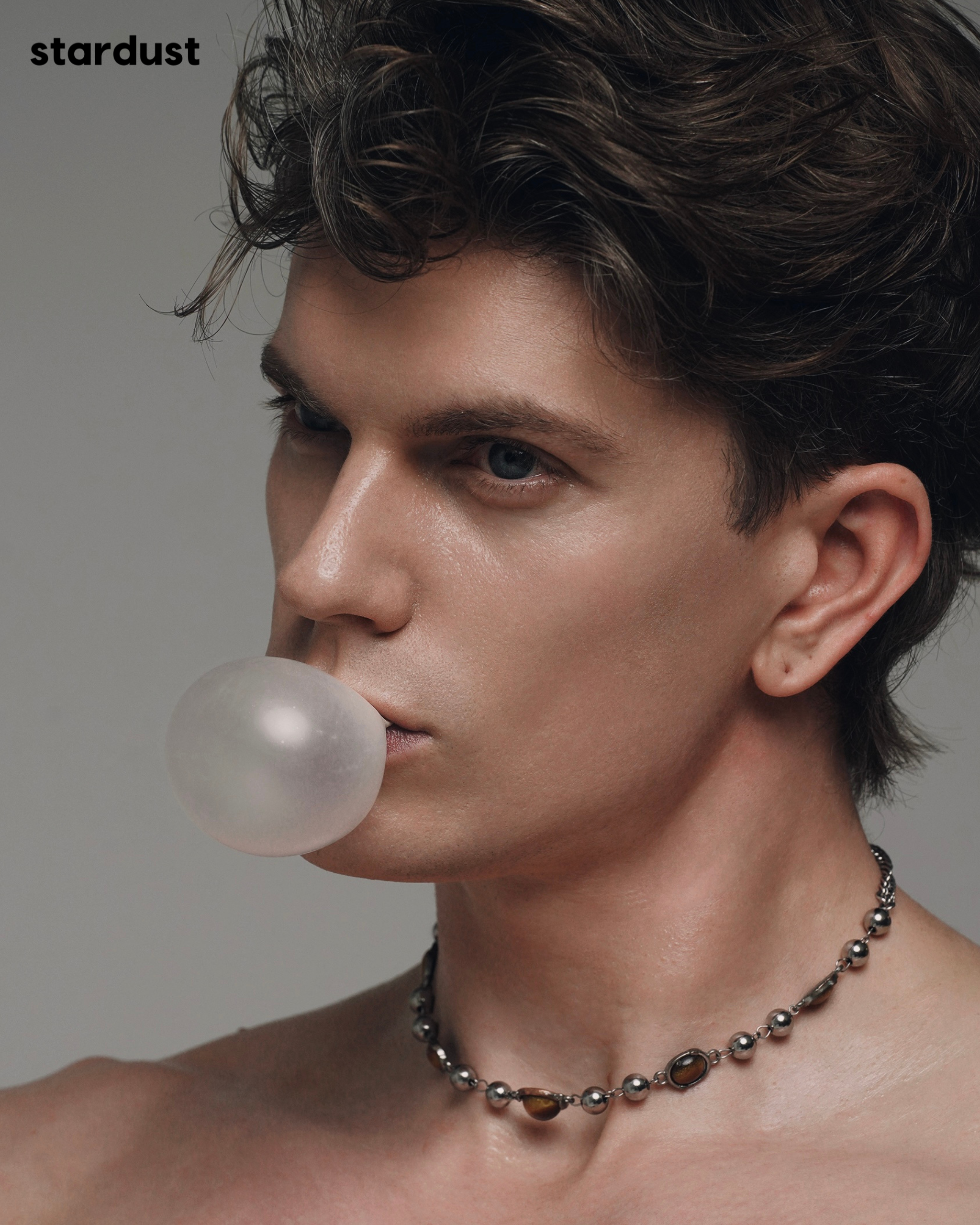 Playful, careless, almost insolent. Bubble Trouble explores a masculinity that refuses to behave: soft, instinctive, and just a little bit wild.